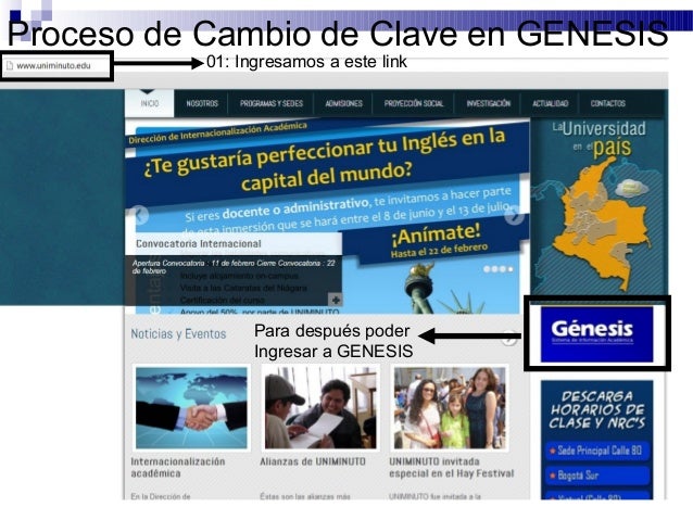6. Proceso de Cambio de Clave en GENESIS 01: Ingresamos a este link Para después poder Ingresar a GENESIS